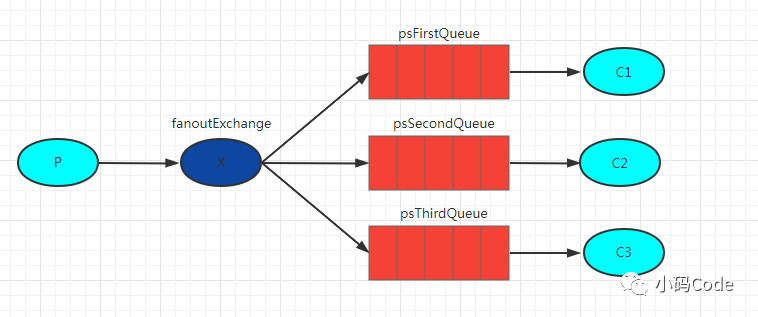 fanoutExchange。psFirstQueue、psSecondQueue、psThirdQueue。routingKey,直接绑定即可。