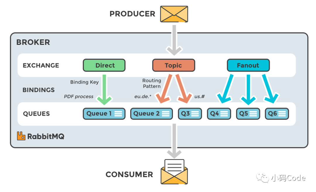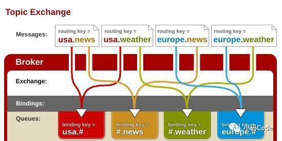 .com 结尾的消息。www.开头的消息。主题模式就派上场了,路由模式和主题模式类似,路由模式是设置特定的routingKey绑定唯一的队列,而主题模式的是使用通配符匹配一个或者多个队列。