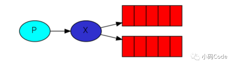 X表示交换机,使用的扇形交换机(fanout),它将发送的消息发送到所有绑定交换机的队列。@Bean