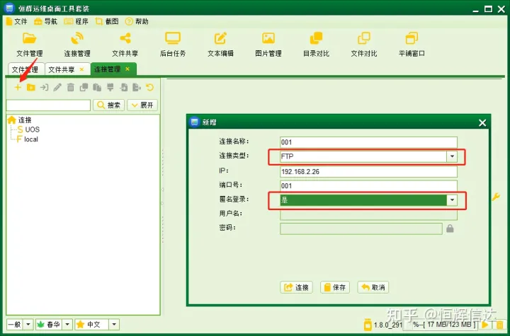 1)点击“连接管理”,选择箭头所指的“+”号,即新增连接;