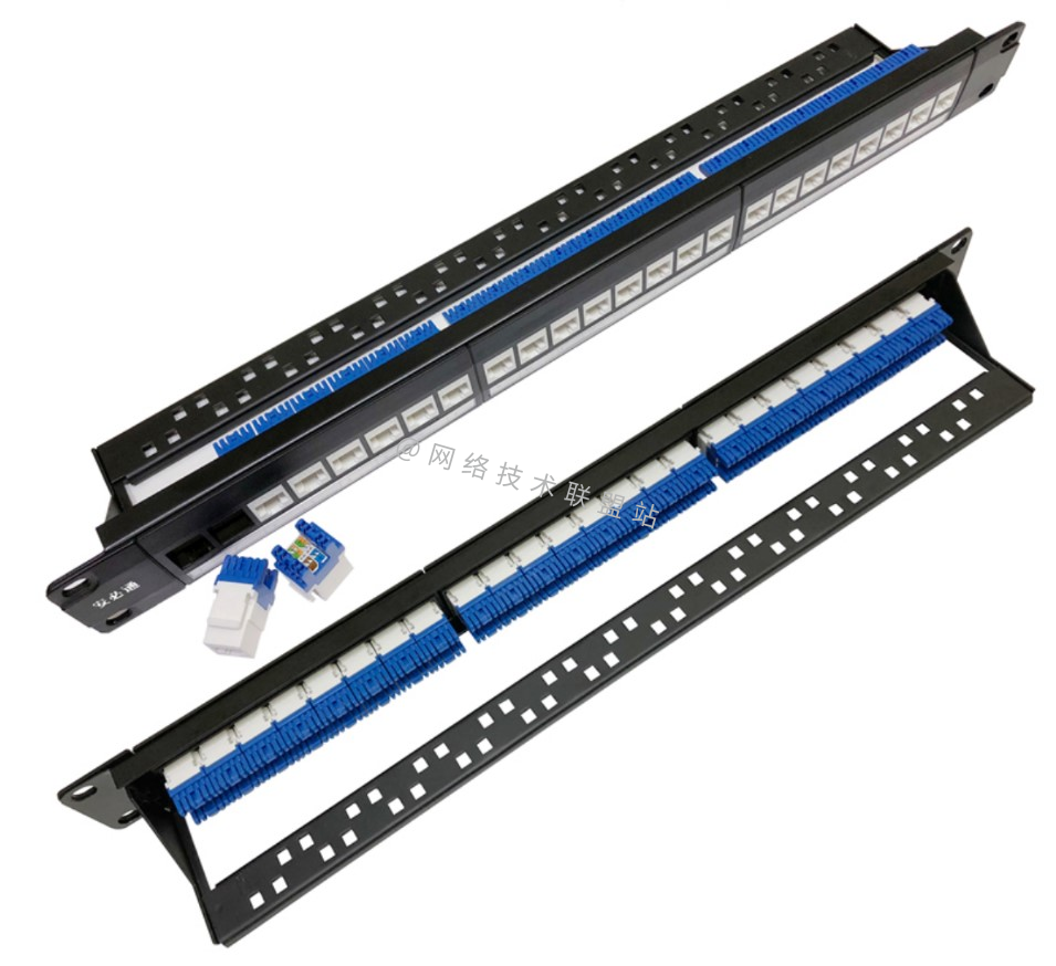 配线架,也称为插孔面板或插孔场,是一种面板,前面有一组以太网或其他端口,背面有裸线,每个端口都映射到打孔裸线背面,并且在前面板上,每个端口都标有一个用于识别目的的数字。