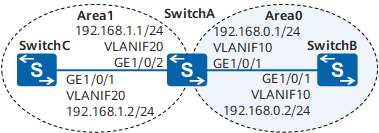 [SwitchA-ospf-1-area-0.0.0.1] network 192.168.1.0 0.0.0.255 //配置area 1所包含的网段