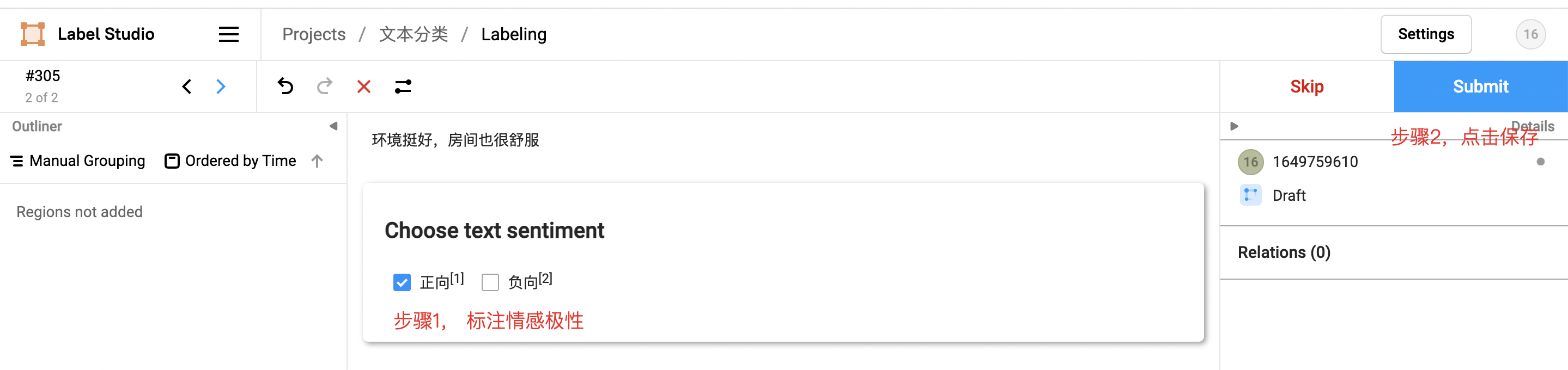 设定好标签后,即可开始进行标注,选择正向或负向,最后点击提交,便标注好一条数据。