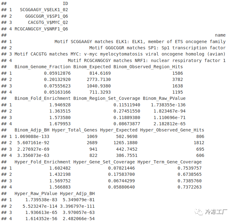 great_ResultTable = getEnrichmentTables(great_Job, category = "Regulatory Motifs")