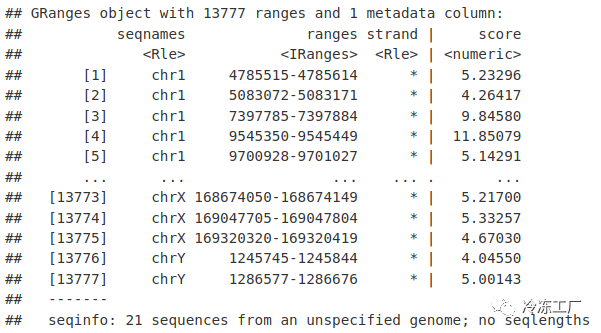 我们现在有一个 GRanges,以山顶为中心,每个山峰的最高信号点。