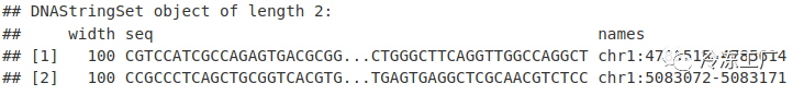 getSeq 函数返回包含峰下序列的 DNAStringSet 对象。