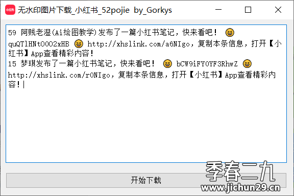 把你需要下载的小红书的分享链接输入到空白处,再点【开始下载】即可。