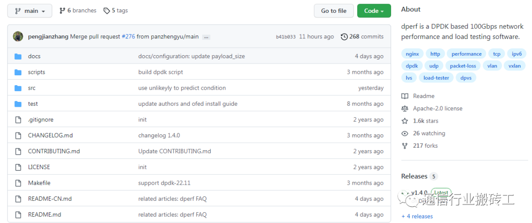 主要讲述dperf使用的dpdk-19.11.14版本的dpdk的配置和编译方法,dperf 目前在github上已经有1.6K 个点赞,工具已经被intel DPDK官网收录,如果您觉得dperf很好,那么欢迎您在github上star一下。