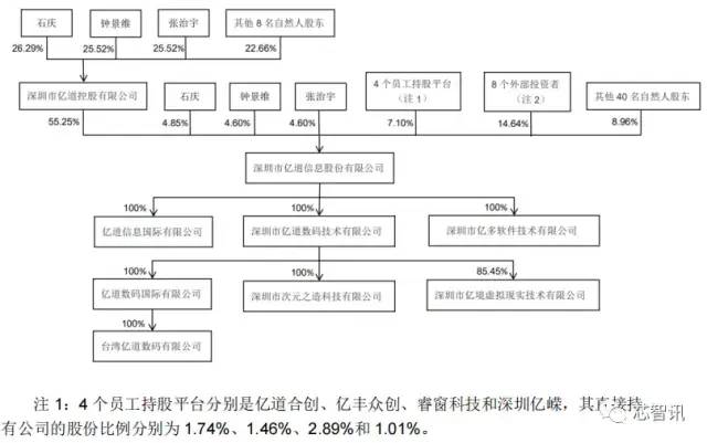 股权结构方面,在本次上市之前,亿道控股直接持有发行人 55.25%的股份,并通过睿窗科技、亿道合创、亿丰众创、深圳亿嵘分别间接控制发行人 2.89%、1.74%、1.46%、1.01%的股份,合计控制发行人 62.35%的股份,为发行人的控股股东。