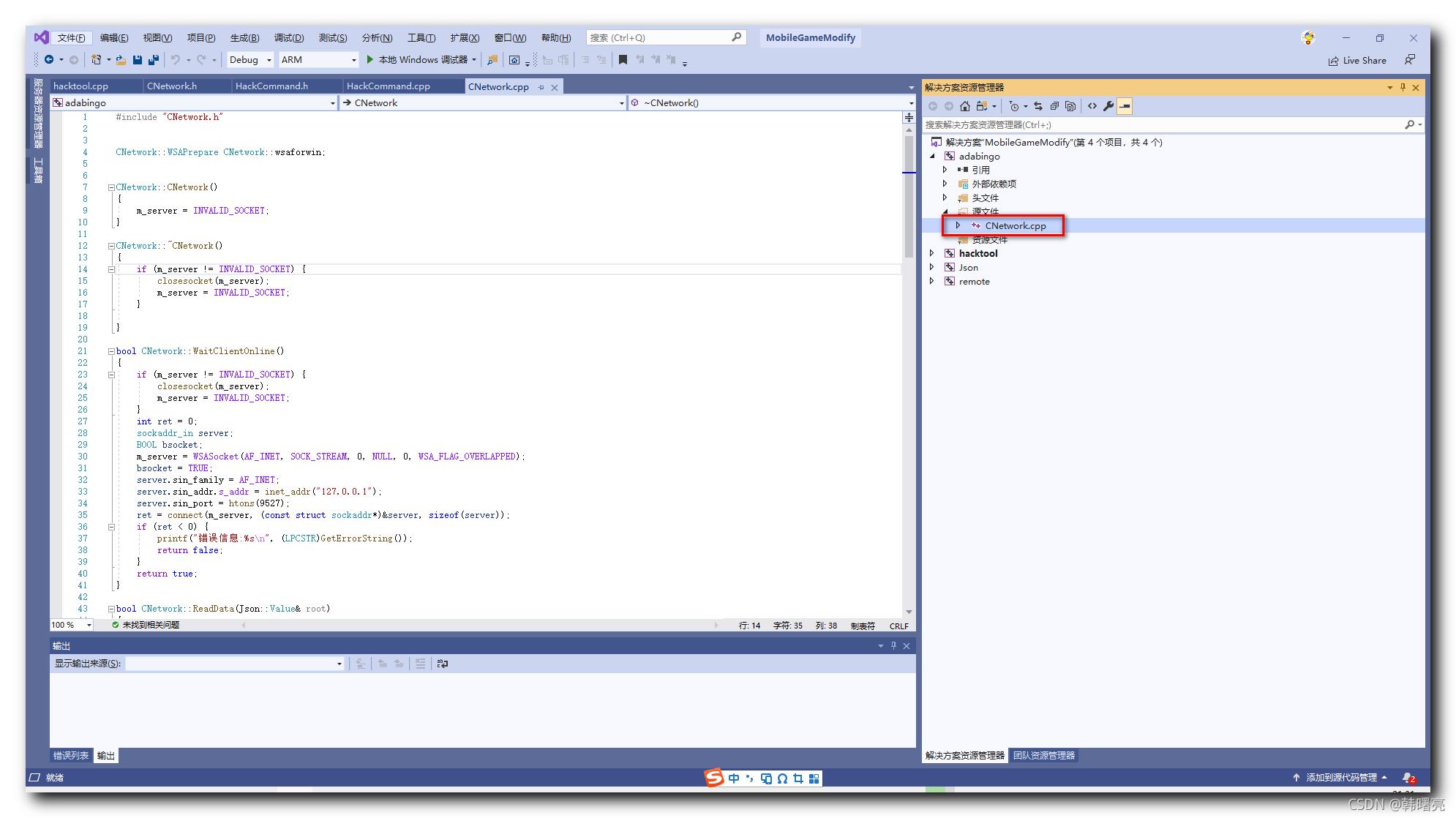 等待客户端上线 : CNetwork::WaitClientOnline() , 模拟器 / 真机 中运行的 cmd 程序 , 可能在 PC 端 hacktool 工具之前 / 之后启动 , 可能需要等待另一端上线 ; 如果 PC 端 hacktool 先启动 , 则需要等待 模拟器端 的 cmd 运行起来 ;