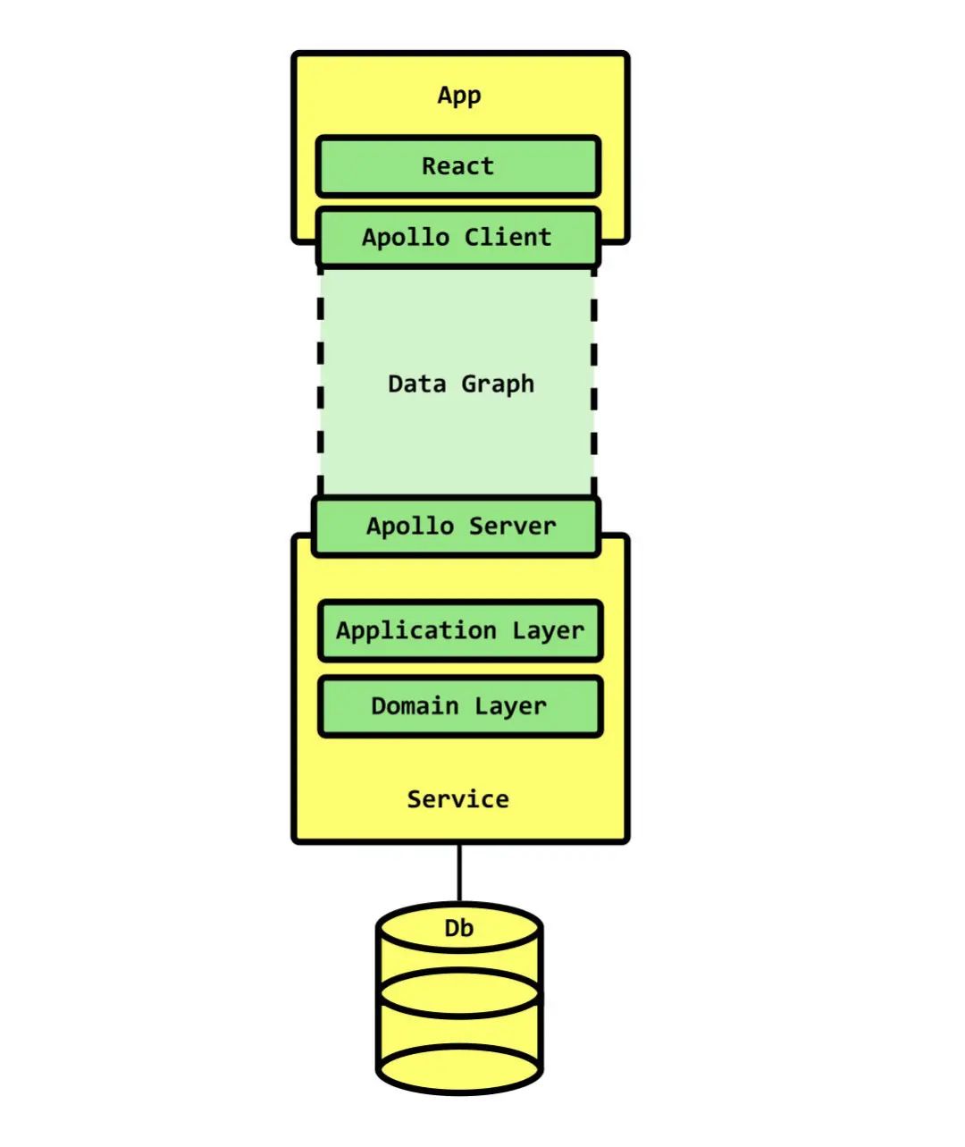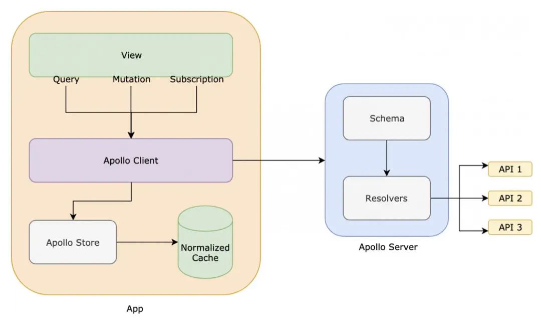 在 Apollo Server 端,这些 API 调用将控制权转交给负责使用 ORM、原始 SQL、缓存、其他 RESTfulAPI 或任何你想到的方法来获取数据的解析器。对于突变,解析器可以简单地将控制权传递给一个应用层用例。
