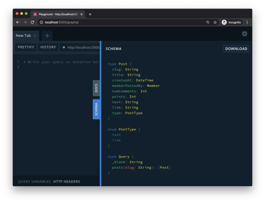 使用 GraphQL Playground,可以浏览 GraphQL 端点的所有功能。