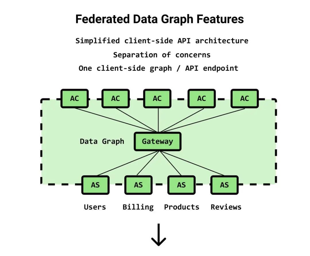 使用 Apollo Federation,每个服务团队都可以从其限界上下文中构建和管理自己的 GraphQL 服务,将其注册到一个 Apollo 网关,从而在整个企业中分布化 GraphQL 的运维工作。