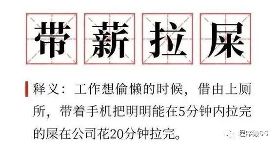 带薪拉屎,网络流行语,指工作想偷懒的时候,借由上厕所,带着手机把明明在5分钟内拉完的屎在公司花20分钟拉完。