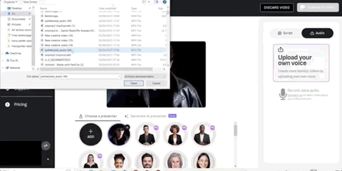 D-ID是一个用来创造会说话的“虚拟角色”的工具,只需要上传图像和音频,AI就会自动生成一段配好音的视频: