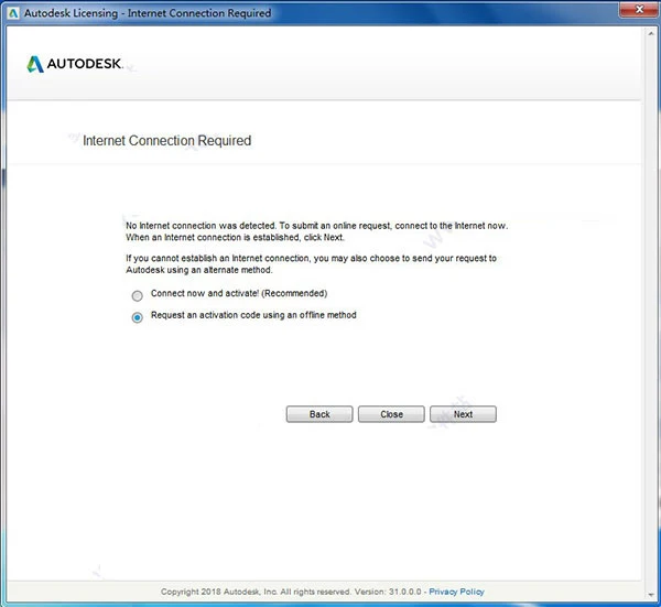 10、进入如下的 Internet Connection Required的窗口,选择第二项的【 Request an activation code using an offine method】,再点击【next】。