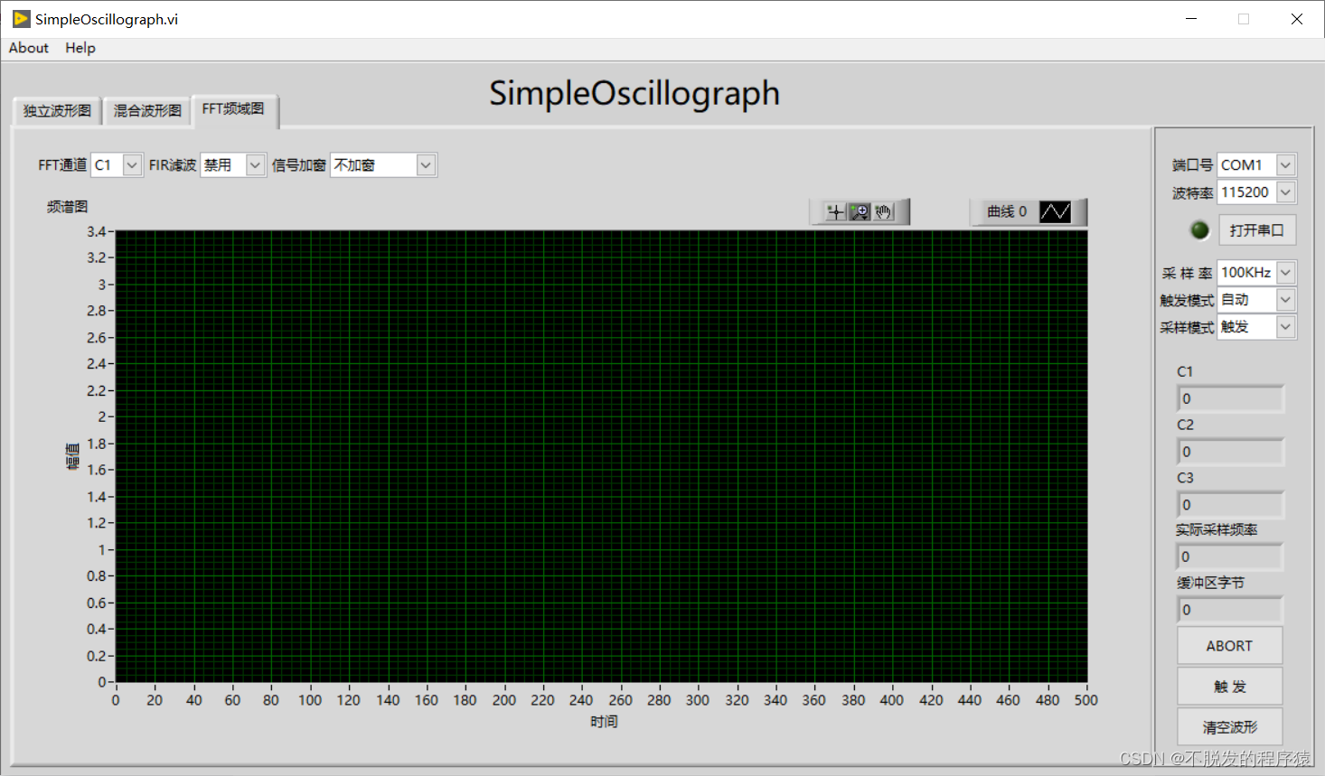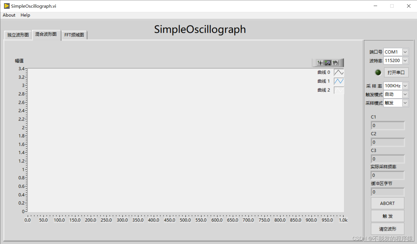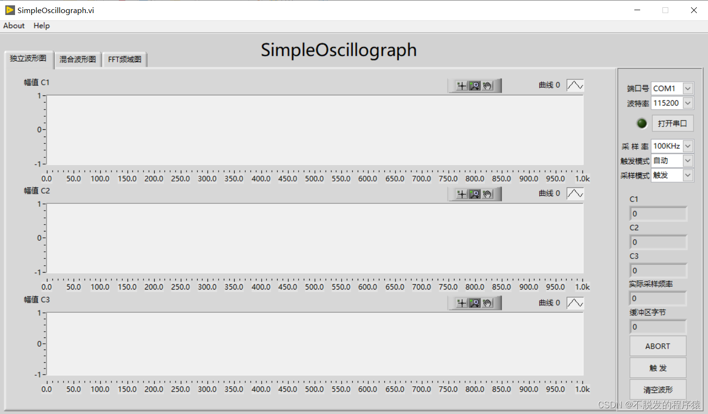 之前的博文分享过LabVIEW虚拟数字示波器,虚拟示波器的数据来自于软件模拟,本篇博文将分享一款串口示波器,LabVIEW设计上位机,数据来自于节点上传(STM32)。