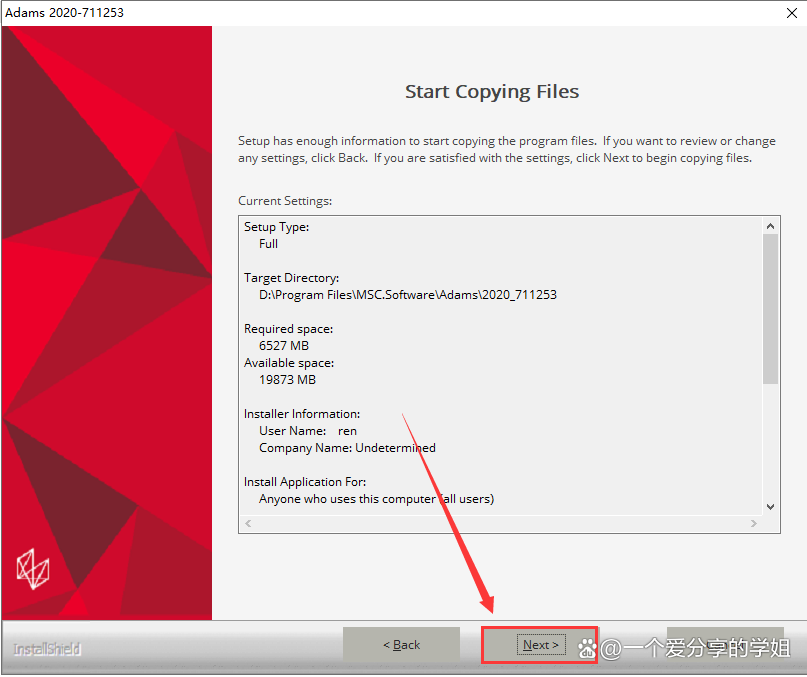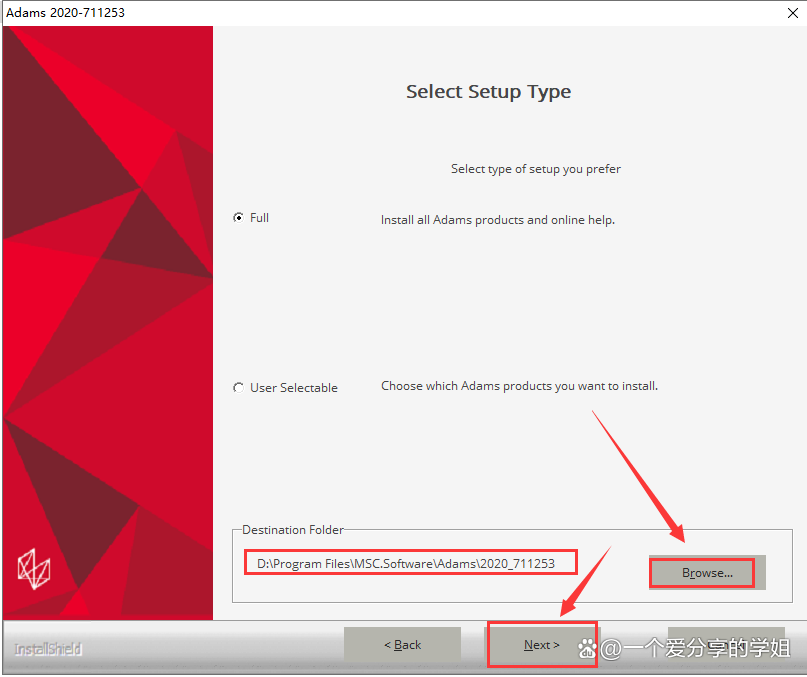 ☉21.点击【Browse】可更改安装位置(建议不要安装在C盘,可以在D盘或其它磁盘下新建一个“Adams”文件夹。注:安装路径中不能有中文),点击【Next】。