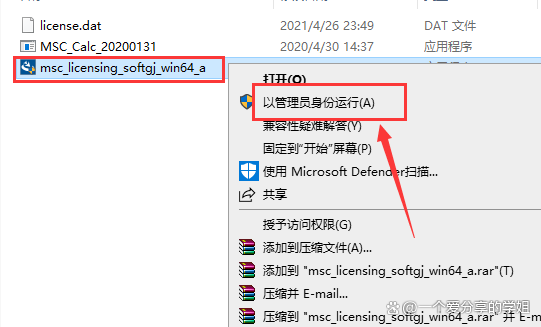 ☉7.鼠标右击该文件夹下的【msc_licensing_softgj_win64_a】选择【以管理员身份运行】。