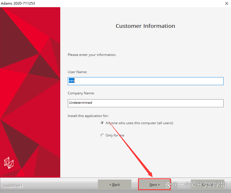 ☉20.输入【User Name、Company Name】(可随便填写),点击【Next】。