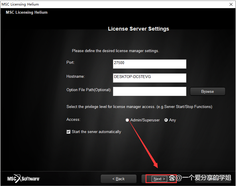 ☉24.输入【27500@计算机全名】,点击【Next】。
