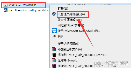 ☉3.鼠标右击【MSC_Calc_20200131】选择【以管理员身份运行】。