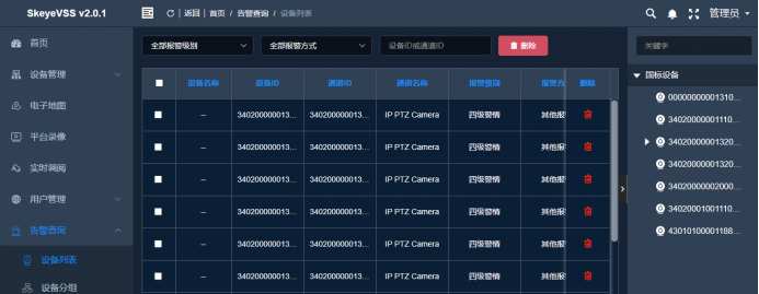 多类别设备资源接入容纳:SkeyeVSS系统支持多网域、多地域监控视频资源接入系统进行统一管理,针对部分消防通道区域原有的视频监控设备,可灵活配置至SkeyeVSS系统,从而在节约成本,视频资源重复利用的同时,打造数字化消防通道智能识别监控系统,形成资源集中,数据共享、多业务融合的视频安防综合管理平台。