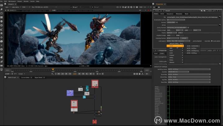 -OpenColorIO色彩管理 借助Sony Picture Imageworks的开源色彩管理解决方案OpenColorIO(OCIO),Nuke可以设置单个配置文件,在所有兼容应用程序中提供一致的色彩,从而简化色彩管理流程。