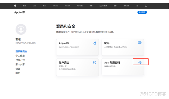 3.跳转到APPID页面中,点击“App专用密码”中的三点