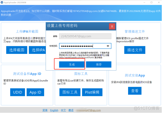 4.输入账号,密码即可生成专用密码(后面IPA到苹果后台也会使用到此专用密码)