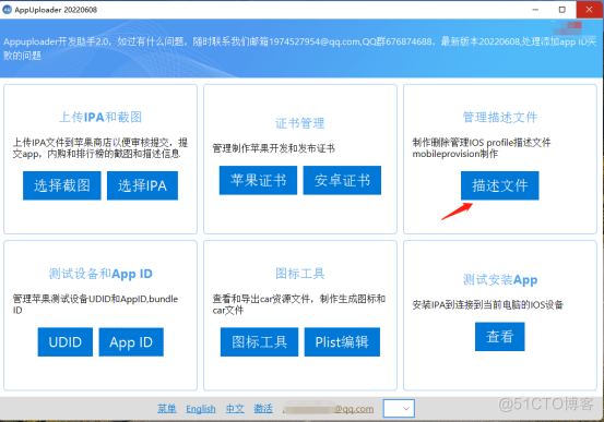 证书部分:主要是通过工具生成.p12证书文件,后面这个证书要导入mac系统。 创建描述文件 1. 点击描述文件