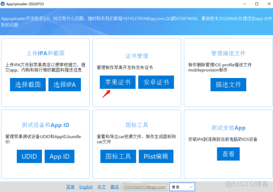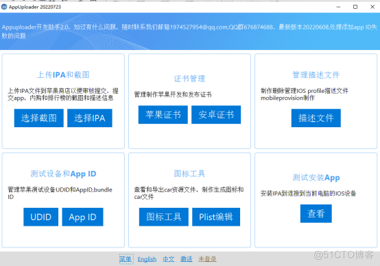 苹果App Store上传应用流程详解,在向AppStore提交应用之前,开发者首先要成为苹果iOS开发者项目的成员,每年向苹果缴纳99美元或199美元的费用(具体申请方法后期更新)。 免688开发IOS应用,根据apple的规定,不支付688,可以开发IOS应用,但是不支持提交审核,推送,支付和apple登录等功能,而appupstore工具实现了这个功能。以下是详细讲解: 第一步:注册苹果开发者账号,按照提示注册即可。 注册地址:https://developer.apple.com/cn/ 第二步:下载APP Uploader 下载地址:http://www.applicationloader.net/ 最新下载地址:https://net-appuploader.oss-cn-qingdao.aliyuncs.com/appuploader_win_0728.zip 以Windows为例,下载了Windows安装包,直接解压,双击appuploader即可启动,如下图所示: