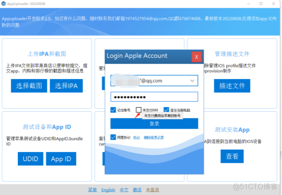 简单介绍一下,此工具的操作方法: 1、登录,使用开发者账号,并且由于没有支付688,需要勾选‘未支付688’选项进行登录。