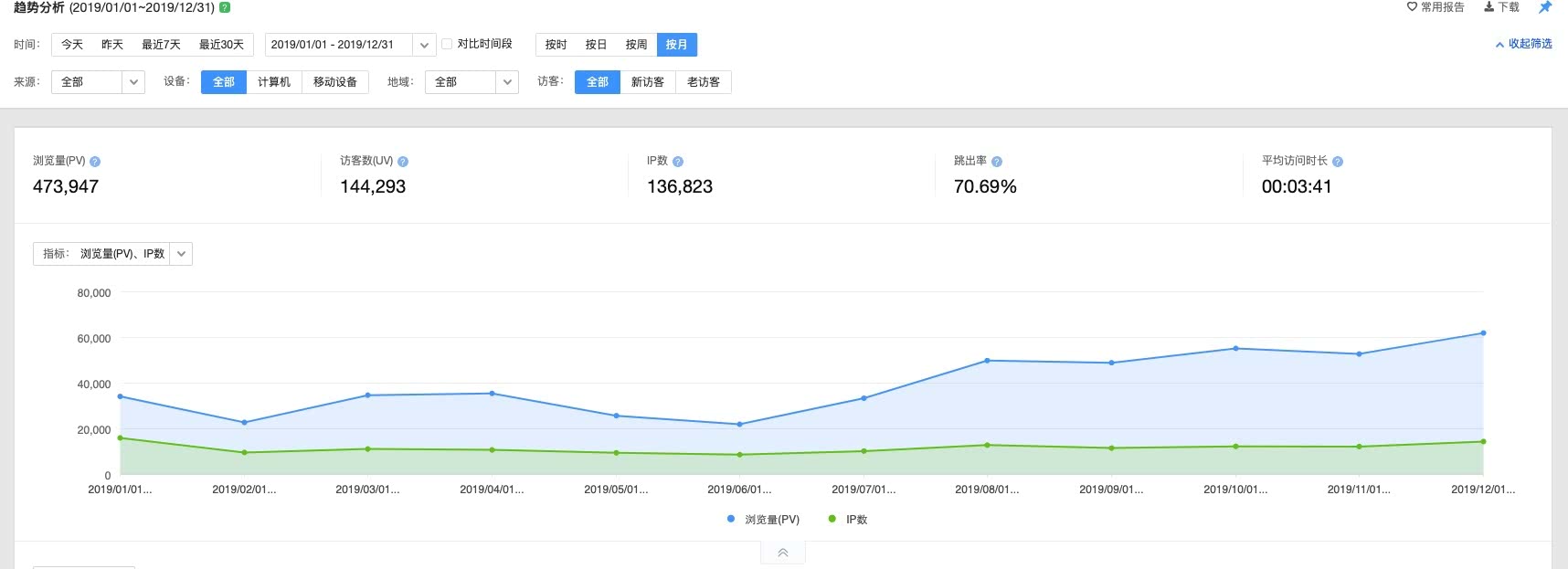 2019年日均IP在370左右,近几个月开始ip稳定在400+了,这点流量其实没啥作用,也就是年末这样总结的时候能占用点文章字数。