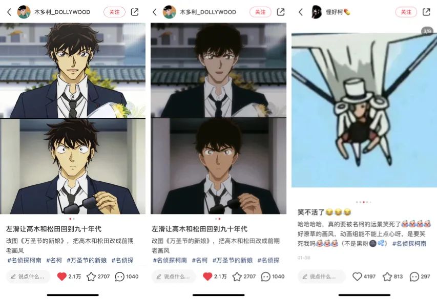 现在的柯南画风VS90年代的画风 / 图源小红书