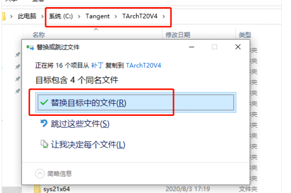 八、粘贴文件到安装目录里,点击替换目标中的文件。