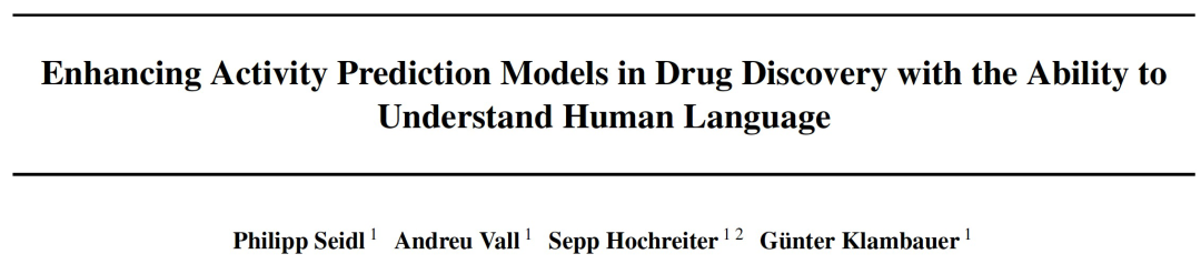 Seidl, P., Vall, A., Hochreiter, S., & Klambauer, G. (2023). Enhancing Activity Prediction Models in Drug Discovery with the Ability to Understand Human Language. arXiv preprint arXiv:2303.03363.