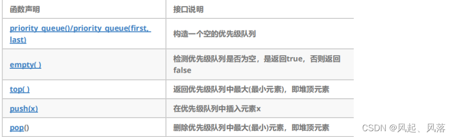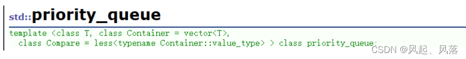 底层是一个堆,默认容器使用vector, 最后一个模板参数代表仿函数 默认使用 less 代表小于 (后面会讲)