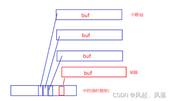 若中控满了,就要扩容,但是扩容代价低 若为vector,本来为100个int空间,需要200个空间,就需要扩容2倍 而 中控是一个指针数组,里面都是指针,可能只需要20个指针就搞定了,所以扩容代价相对于低一些