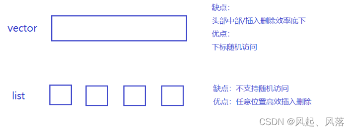 优点: 1.相比于vector,扩容代价低 2. 头插 头删,尾插尾删效率高 3. 支持随机访问