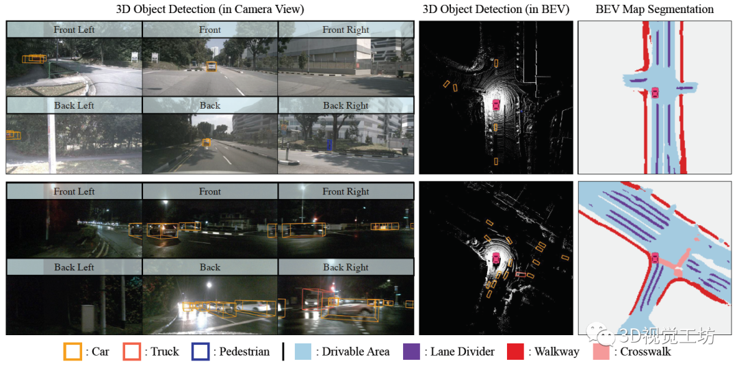 输出结果也很漂亮:联合实现了3D目标检测和语义地图构建。