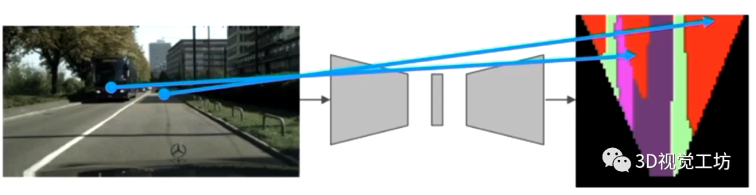 在自动驾驶的车道线检测、可行驶区域检测等任务中,都是针对前视摄像头输入进行逐像素的分割/检测,每个输入像素都对应一个输出类别。这种一一对应的关系使得我们可以很容易得应用CNN/Transformer模型进行分割/检测。