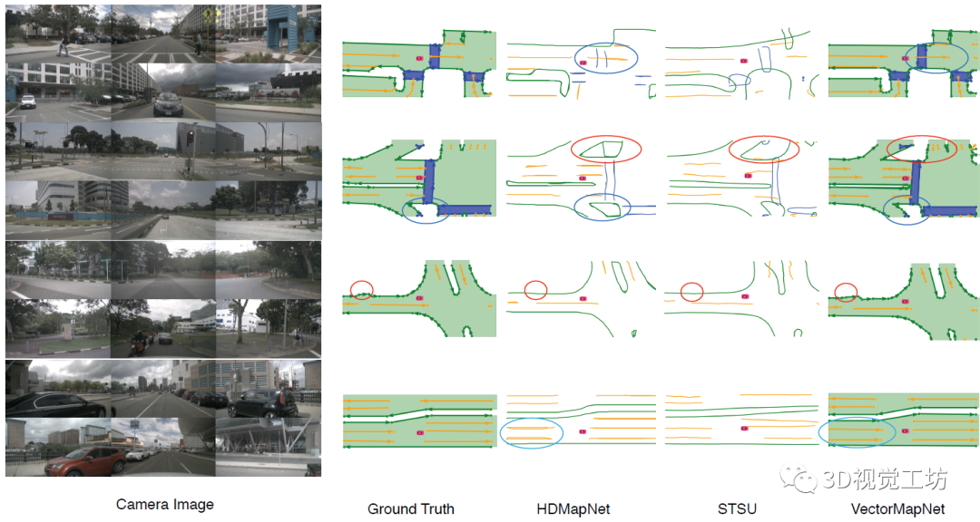 虽然整体来看架构有些复杂,但这个网络是直接端到端的,有利于训练和应用。笔者个人感觉,VectorMapNet的一个更有意思的点在于,它是一个端到端的多阶段网络。也就是说,网络不再是一个完全的黑盒子。如果网络的输出结果出现漏检/误检,那么我们可以打印出中间的关键点,看看具体是哪一个阶段出现了问题。