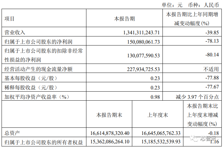 4月27日晚间,国产存储芯片厂商兆易创新发布2023年一季度财报,该季实现营收13.41亿元,同比减少39.85%;归属于上市公司股东的净利润1.5亿元,同比大跌78.13%;归属于上市公司股东的扣非净利润1.30亿元,同比也大跌80.14%。