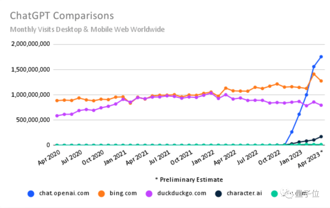 4月ChatGPT访问量增长12.6%,而3月增长为55.8%、2月62.5%、1月131.6%。