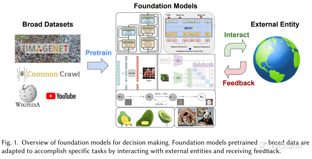 在各种规模的数据上进行预训练的基础模型在广泛的视觉和语言任务中展示了非凡的能力。当此类模型部署在现实世界环境中时,它们不可避免地会与其他实体和代理交互。例如,语言模型通常用于通过对话与人类互动,视觉感知模型用于自主导航邻里街道。为了响应这些发展,正在出现新的范例来训练基础模型与其他代理交互并执行长期推理。这些范例利用了为多模式、多任务和多面手交互而策划的越来越大的数据集。研究基础模型和决策制定的交叉点对于创建强大的新系统具有巨大的希望,这些系统可以在对话、自动驾驶、医疗保健、教育和机器人技术等各种应用程序中有效交互。在这份手稿中,我们检查了决策基础模型的范围,并提供了概念工具和技术背景,以了解问题空间和探索新的研究方向。我们回顾了最近通过提示、条件生成建模、规划、最优控制和强化学习等多种方法在实际决策应用中建立基础模型的方法,并讨论了该领域的常见挑战和未解决的问题。
