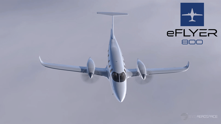 这个名叫「eFlyer 800」的全电动双涡轮螺旋桨飞机,能够搭载一两名飞行员和最多七名乘客。