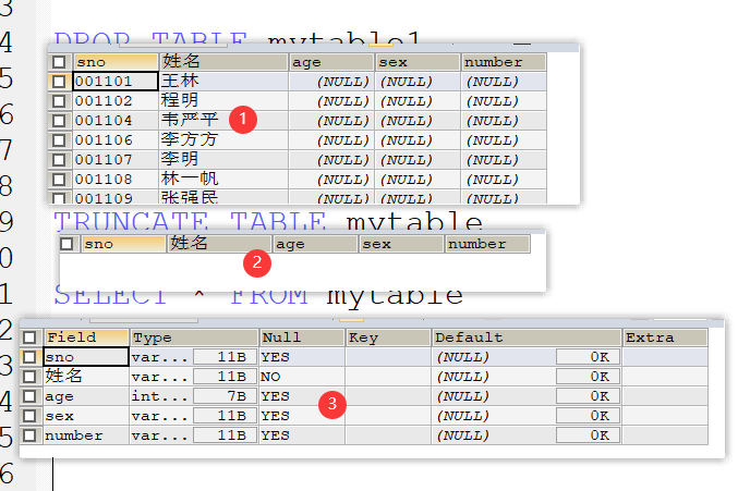 #TO可以省略删除表会把表中的数据和内容全部删掉。