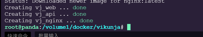 打开群晖的SSH端口,随后用SSH工具链接到NAS,执行sudo -i获取管理员权限后进到项目根目录文件夹:cd /volume1/docker/vikunja,再执行项目启动命令:docker-compose up -d等待容器拉取启动。